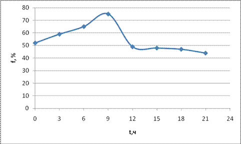 Рис.4. суточный ход относительной влажности воздуха.