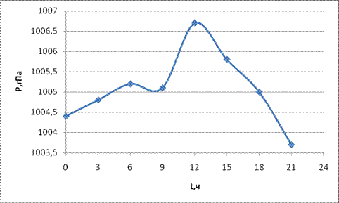 Рис.5. Суточный ход атмосферного давления на уровне станции.