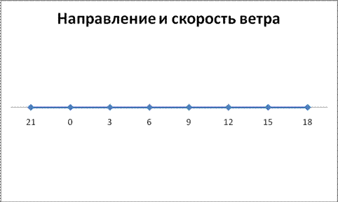 С 21 до 3 часов дул слабый (2м\с) северо-восточный ветер. После 6 часов началось снижение скорости, и в 6 часов наблюдался её минимум – 1м\с и резкая. Затем скорость ветра начала расти, и в 12 часов наблюдался скорости 2м\с. Это можно объяснить падением атмосферного давления и возрастанием интенсивности турбулентного перемешивания. После этого, когда начался рост давления и снизилась интенсивность турбулентного перемешивания, скорость начала снижался в 18 часов. Амплитуда суточного изменения скорости ветра составила 1м\с.