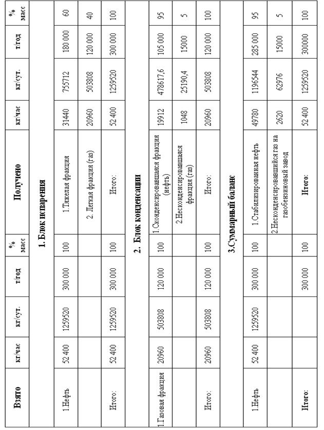 2.5 Материальный баланс системы стабилизации нефти