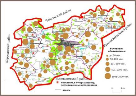 Для выявления реальной ситуации на сельском рынке труда Новооскольского района, мы провели собственные исследования по четырем поселениям экспедиционным способом. Нами были выбраны четыре сельских поселения: Великомихайловское, Богородское, Валильдольское и Тростенецкое.