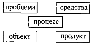 Рассматривая связь между средствами и процессами с точки зрения механизмов и закономерностей развития, мы получаем схему круговорота деятельности. Эта линия оказалась более простой, чем вторая. Чтобы рассмотреть связь между средствами и процессами в плане функционирования одной единицы деятельности, пришлось построить более сложное образование и ввести в исходную блок-схему новый дополнительным элемент. Было сделано несколько попыток в этом направлении. Первой появилась схема «пятичленки» вида