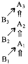 Но потом мы выяснили, что на следующем этапе каждое из соотношений, зафиксированных в задаче, надо еще получить. Это тоже предполагает особый процесс мышления. По графической схеме он идет как бы перпендикулярно исходной цепочке соотношений. Наглядно схематически это можно представить так: