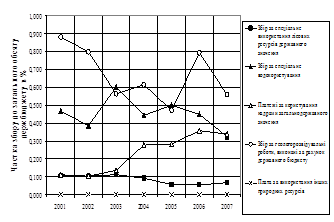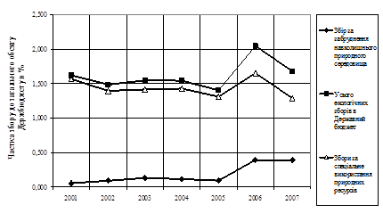 3.1 Динаміка показників обсягів екологічних зборів за використання природних ресурсів в Державний бюджет України за 2001 – 2007 роки та місцеві бюджети у Дніпропетровській області за 2003 – 2006 роки
