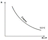 Однако если предположить, что скорость обращения зависит от ставки процента (r), и с увеличением ставки процента скорость обращения денег возрастает, а спрос на деньги уменьшается, тогда кривая