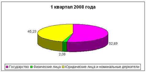 Рис. 3.1 — Структура акционерного капитала ОАО «РАО ЕЭС России» на 31.03.2008