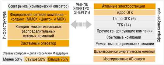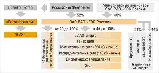 Как нами уже было отмечено, в ходе реформирования ОАО РАО «ЕЭС России» были выделены различные сбытовые, генерирующие компании, которые должны были создать конкурентный рынок энергии.