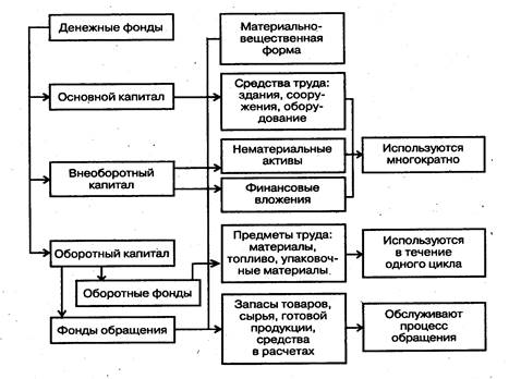 Денежные фонды представлены тремя видами капитала: основным, внеоборотным и оборотным. В свою очередь, каждый из них имеет свои элементы, выраженные в материально-вещественной форме.
