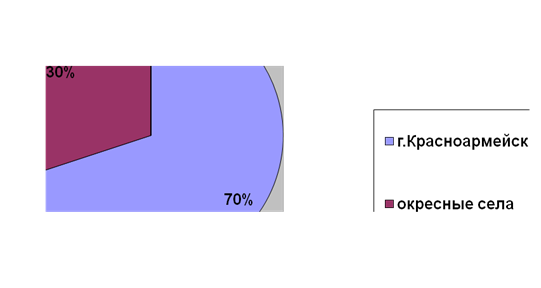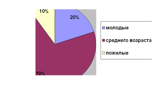 Рисунок 3. Структура покупателей по географическому признаку Проанализировав структуру покупателей магазина по возрастным категориям, мы выяснили, что основную часть покупателей магазина составляют люди среднего возраста (70%), на втором месте – молодые люди — студенты и работающие (20%), и покупатели пожилого возраста – пенсионеры (10%).