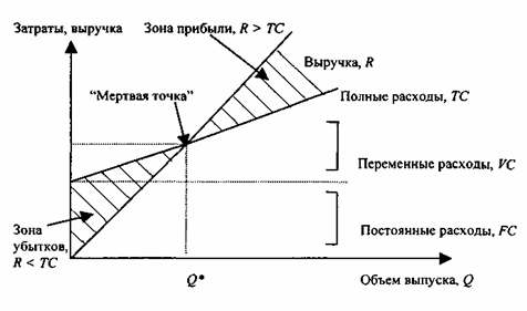 Анализ безубыточности или анализ издержек, прибыли и объема производства, как его иногда называют – это аналитический подход к изучению взаимосвязи между издержками и доходом при различных уровнях производства. Анализ безубыточности полезен также для текущего управления, так как он обеспечивает информацией для принятия решения путем анализа влияния изменений в цене продукции, производстве и объемах продаж и издержках, а так же прогнозирования прибылей, убытков и потоков денежных средств [20, с. 328].