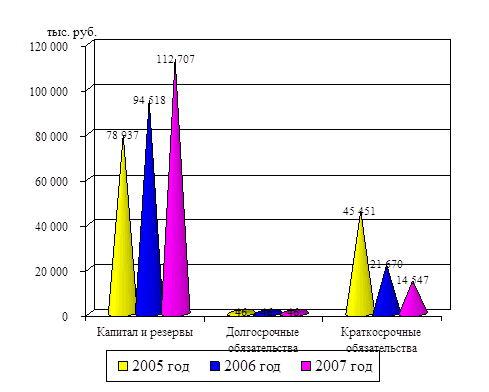 В структуре активов высокий удельный вес занимает дебиторская задолженность. В результате этого снижается доля денежных средств, что создает трудности для погашения текущих обязательств предприятия. В 2007 году величина дебиторской задолженности в составе активов составляет около 33%, что свидетельствует об отвлечении средств из оборота, а это негативно сказывается на финансовом состоянии предприятия.