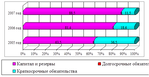— доля собственного капитала ОАО «НМУ-3» существенна и за период с 2005 года по 2007 год увеличивается с 63,4% до 88,5%;