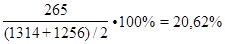 (1304–1254) / 1256 = 0,04