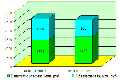 Анализ структуры источников формирования капитала РСФ Октябрьского района ОАО «Минскремстрой» приведен в таблице 5. Динамика пассивов РСФ Октябрьского района ОАО «Минскремстрой» по состоянию на 1 января 2007–2008 гг. более наглядно представлена данными рисунка 4.