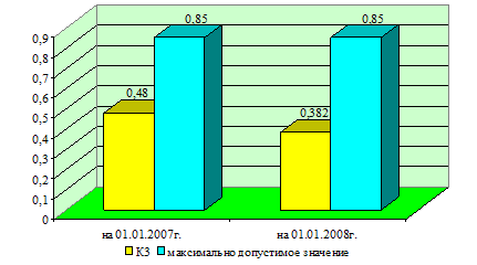 Значение данного коэффициента на 01.01.2007 г. и на 01.01.2008 г. соответствует нормативу, то есть РСФ Октябрьского района ОАО «Минскремстрой» способно рассчитаться по своим финансовым обязательствам после реализации активов.