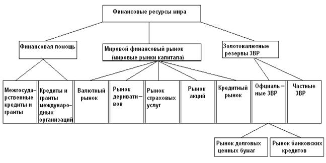 Мировой финансовый рынок это система взаимосвязанных рынков: 1) денежного, на котором совершаются операции с долговыми инструментами сроком от 1 дня до 1 года; 2) кредитного, обслуживающего предоставление ссуд на более длительный период, и 3) ценных бумаг (эмиссия и купля-продажа последних).