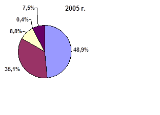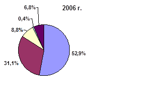 Реальный размер собственного капитала увеличился в 2006 году по сравнению с 2005 годом на 6,5 %, в 2007 году по сравнению с 2006 годом собственный капитал увеличился на 13,1 %. Наибольший удельный вес в 2005 году занимали фонды специального назначения и, их доля соответственно составила 45 %, нераспределенная прибыль 51,0 %. В 2006 году структура собственного капитала сохранилась на уровне прошлого года, однако доля нераспределенной прибыли увеличилась и составила 54,0 %, а прочих фондов специального назначения – несколько снизилась по сравнению с прошлым годом и составила 42 %. В 2007 году соотношение анализируемых источников формирования собственного капитала сложилось на уровне 2005 года.