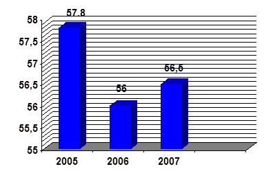 Доля собственного капитала в активах организации составила в 2007 году 56,5 %, в 2006 году – 56 % и в 2005 году 57,8 % .