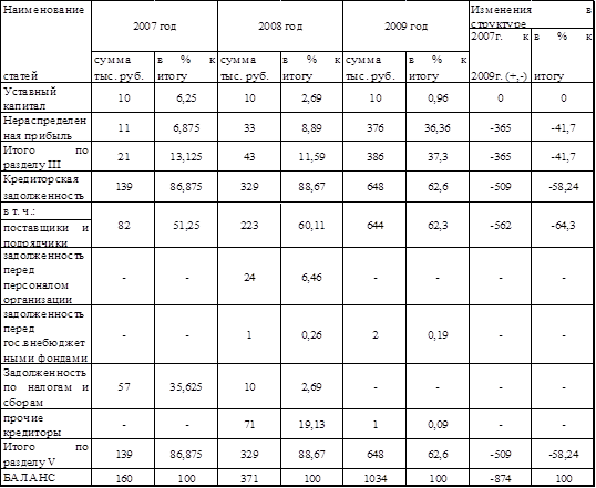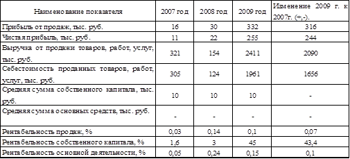 В процессе анализа выявлена только одна отрицательная тенденция: увеличение кредиторской задолженности. Увеличение выручки от реализации в 2009 году, а также снижения себестоимости продукции стало причиной роста прибыли.
