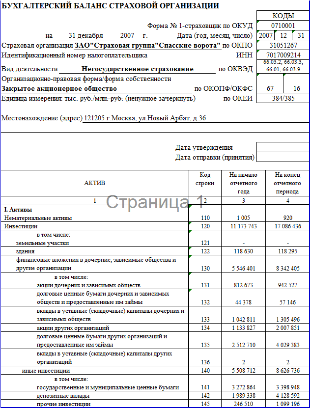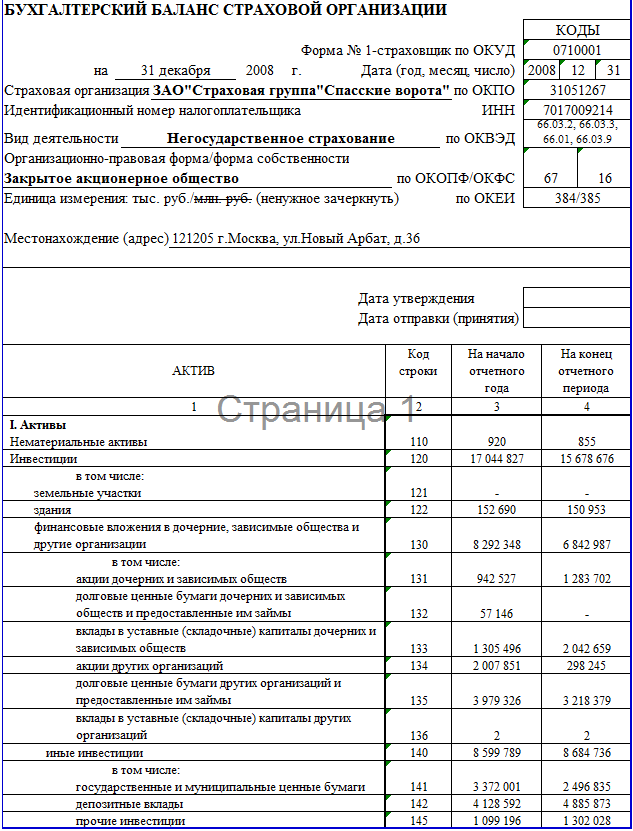 (на примере ЗАО «Страховая группа «Спасские ворота»)