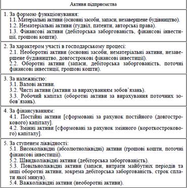 Таблиця 1.1 Класифікація активів підприємства [3, с.41]