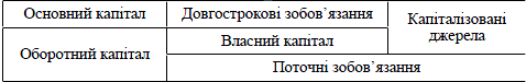 Як видно із схеми, капіталізовані джерела спрямовуються на фінансування необоротних активів і частини оборотних активів. Частина оборотного капіталу, яка сформована на постійній основі, тобто за рахунок капіталізованих джерел, називається робочим капіталом (власні оборотні кошти). Нестача робочого капіталу призводить до підвищення фінансової залежності і свідчить про нестійке фінансове становище підприємства. [5,c.65]