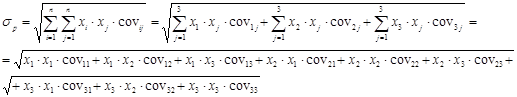 Стандартное отклонение доходности иностранного актива является функцией стандартного отклонения внутренней доходности этого актива, стандартного отклонения в иностранную валюту и корреляцию между двумя доходностями.