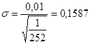 Если стандартное отклонение (σri ) стоимости финансового инструмента в течение дня составляет 0,01, а в году насчитывается 252 торговых дня, то среднегодовая волатильность равна: