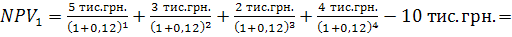 1) Чистий приведений дохід при і1 = 12%.