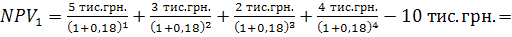 2) Чистий приведений дохід при і2 = 18%.