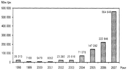 Рис. 1.Динаміка показника капіталізації ПФТС,1998—2007 роки