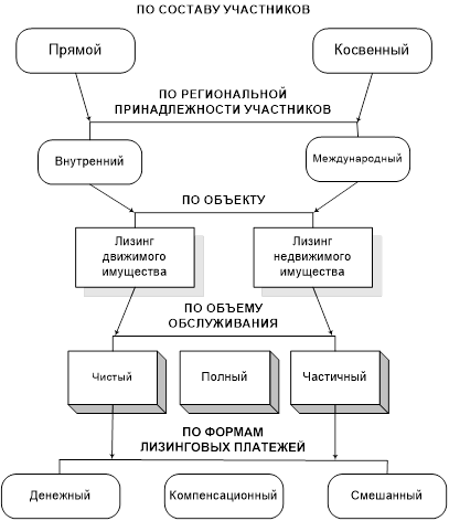 — внешний (международный) лизинг связан с лизинговыми операциями, осуществляемыми участниками из разных стран. На современном этапе внешний финансовый лизинг используется, как правило, при совершении лизинговых операций совместными предприятиями с участием иностранного капитала.