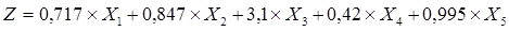 Профессор кафедры теории кредита и финансового менеджмента СПБГУ В.В. Ковалев говорит о том, что Альтман, обследовав 66 предприятий промышленности, половина из которых обанкротилась в период между 1946 и 1965 гг., а половина работала успешно, провел анализ 22 аналитических коэффициента, которые теоретически могли иметь связь с прогнозированием возможного банкротства предприятий. После чего он отобрал 5 наиболее значимых для прогноза показателя и построил многофакторное регрессионное уравнение, которое имеет вид:
