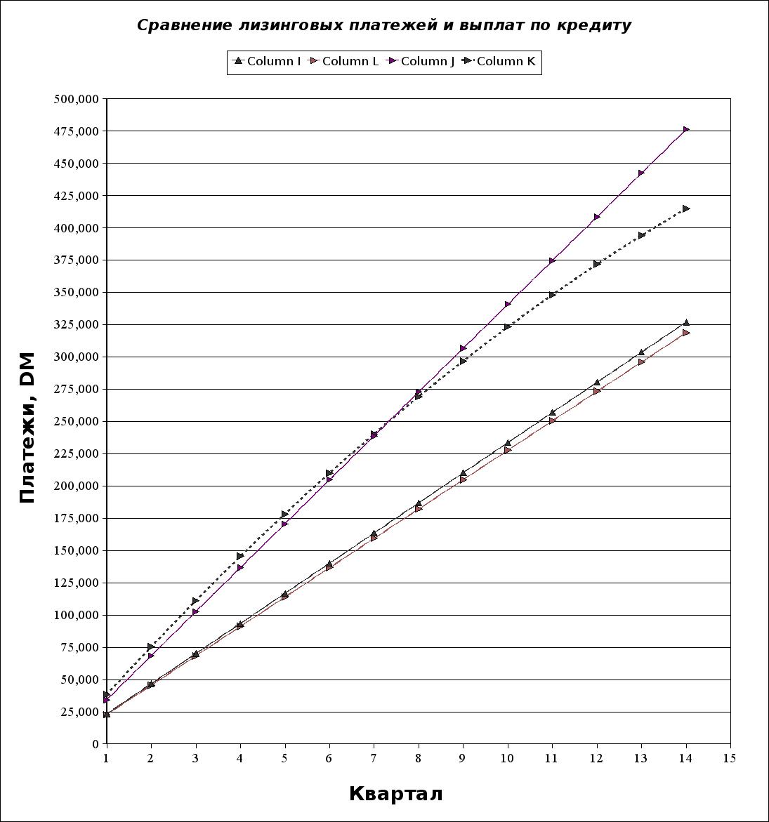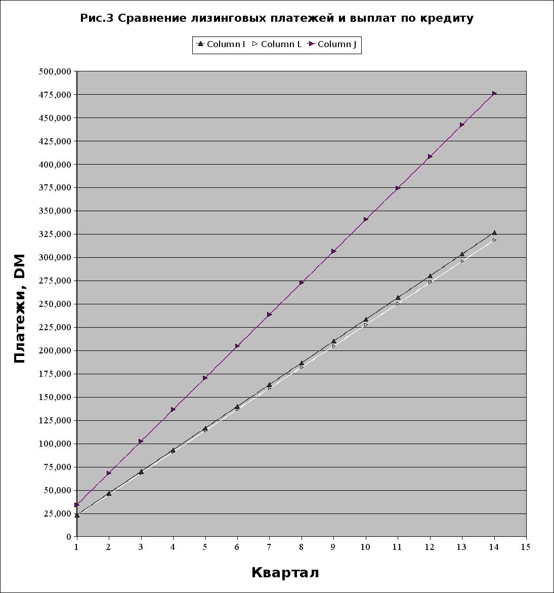 Сумма эквивалентного займа определяется стоимостью денежных потоков, равных, в свою очередь, лизинговым задолженностям в каждый момент времени. Метод прямого сравнения предполагает сравнение сумм лизингового финансирования и эквивалентного ему займа.