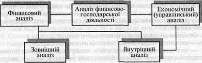 Перехід економіки України до ринкових відносин викликав відповідні зміни в окремих галузях знань. Відбувся розподіл бухгалтерського обліку на фінансовий та управлінський, який, в свою чергу, обумовив відповідний розподіл фінансово-господарського аналізу (рис. 1.3).