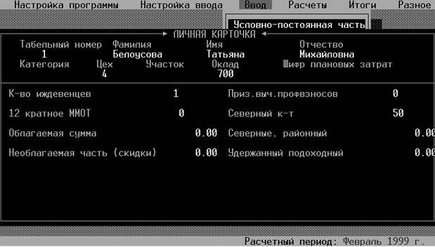 3.4. Р а с ч е т з а р а б о т н о й п л а т ы п о п р о г р а м м е « З а р п л а т а »… 20