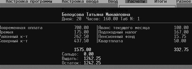 Начислено: 1575.00 Удержано: 332.75