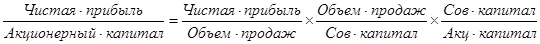Эта формула раскрывает связь между рентабельностью всех активов. рентабельностью реализации и оборачиваемостью активов Экономически связь, заключаетсяв том, что формула прямо указывает пути повышения рентабельности при низкой рентабельности продаж необходимо стремиться к ускорению оборота активов.