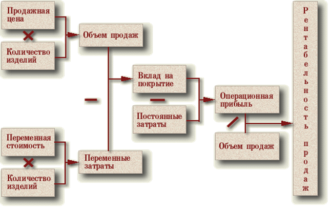 При анализе путей повышения рентабельности важно разделять влияние внешних и внутренних факторов. Такие показатели, как цена продукта и ресурса, объем потребляемых ресурсов и объем производства продукции, прибыль от реализации и рентабельность продаж, находятся между собой в тесной функциональной связи. Для монопродукта и моноресурса взаимосвязь этих показателей можно отразить с помощью следующей схемы: