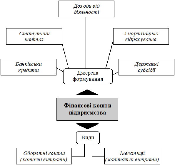 Мал. 1.1. Джерела формування і види фінансових коштів підприємства