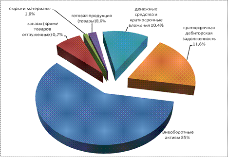 Активы организации на конец 2009 г. характеризуются следующим соотношением: 85% внеоборотных активов и 15% текущих активов. При этом можно наблюдать увеличение денежных средств в структуре текущих активов с 8% в 2007 году до 10,4% в 2009 году. И некоторое увеличение краткосрочной дебиторской задолженности 1,3% в 2007 году до 3,9 в 2009 году.