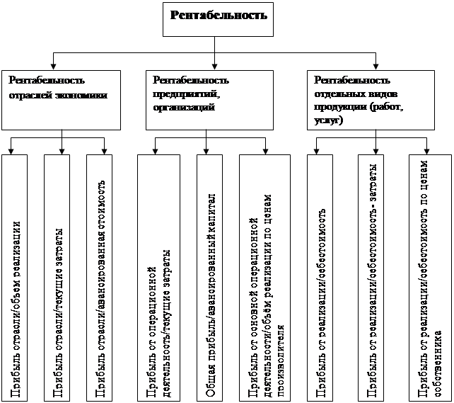 Автор Ковалев В.В. считает, что существуют разные методы расчета прибыли, текущих затрат, авансированной стоимости, которые используются для расчета рентабельности. В приведенной ниже схеме рассмотрим классификацию показателей рентабельности.