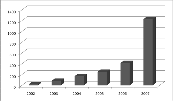 | Годы | 2002 | 2003 | 2004 | 2005 | 2006 | 2007 |