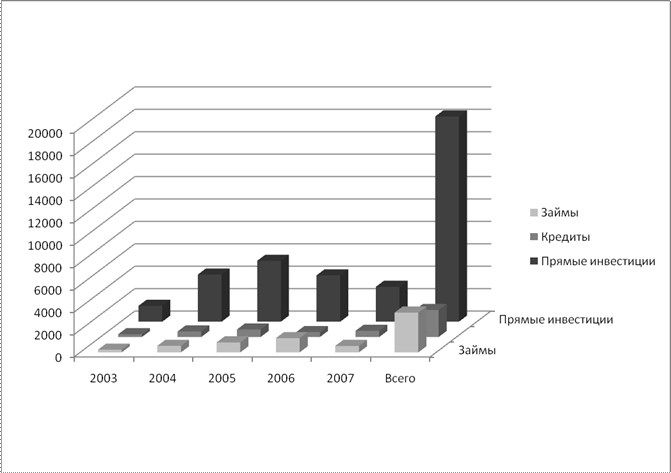 Сводные данные о привлечениях иностранных инвестиций в лизинг Республики Казахстан на 2003-2007 года млн. долларов США