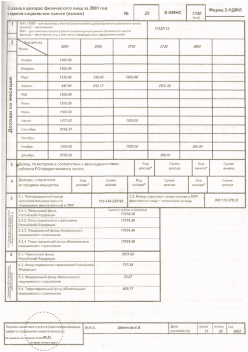 2.3 Отчетность по налогу на доходы физических лиц в СПК «Форма»