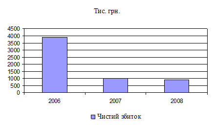 Рис. 2.4. Динаміка статті «чистий збиток» ВАТ «Павлоградський завод автоматичних ліній і машин» за період 2006-2008рр.