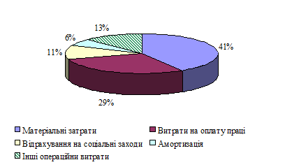 Зробимо аналіз структури елементів операційних витрат підприємства за 2008р., який представленій на рис. 2.5.
