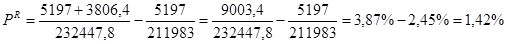 Па =( (QПЛ а пл — Qб аб) ( Rб – Rср) ) / 100%