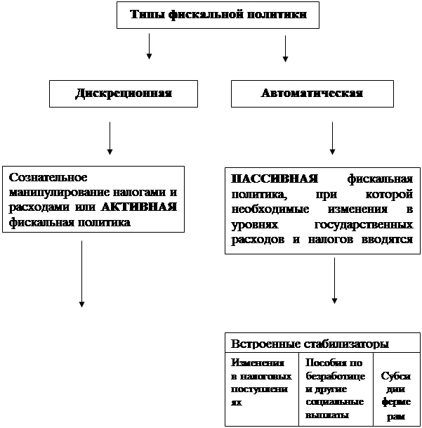 Под дискреционной фискальной политикой понимается сознательное манипулирование налогами и правительственными расходами с целью изменения реального объема национального производства и занятости, контроля над инфляцией и ускорения экономического роста. В рамках дискреционной политики рассматриваются различные социальные программы, государственная программа занятости, изменения налоговых ставок.