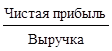 | Характеризует рентабельность фирмы с учетом всех издержек, связанных с реализацией продукции и налога на прибыль, представляет собой сумму чистой прибыли на каждый рубль реализованной продукции | Показывает относительную эффективность использования активов фирмы для получения выручки – сумма выручки на рубль вложенного капитала | Показывает общую эффективность использованного вложенного капитала по критерию полученной прибыли, капиталоотдачу вложенного капитала – сумма прибыли на рубль вложенного капитала |